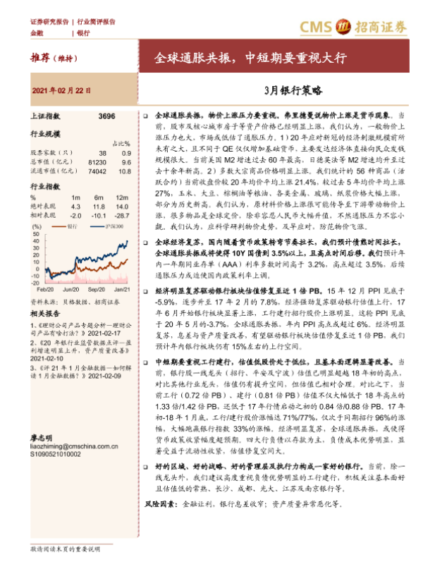 【海通证券】【20210222】3月银行策略:全球通胀共振,中短期要重视大行-5页 行业研究