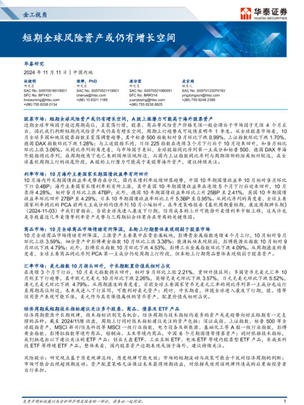 【华泰证券】【20241111】金工视角:短期全球风险资产或仍有增长空间-12页 行业研究