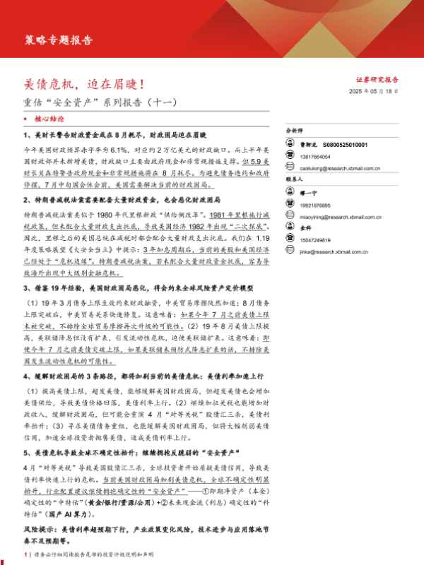 【西部证券】【20250518】重估“安全资产”系列报告(十一):美债危机,迫在眉睫!-19页 宏观策略