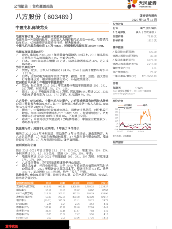 【天风证券】【20200317】八方股份-603489.SH-中置电机稀缺龙头-29页 行业研究