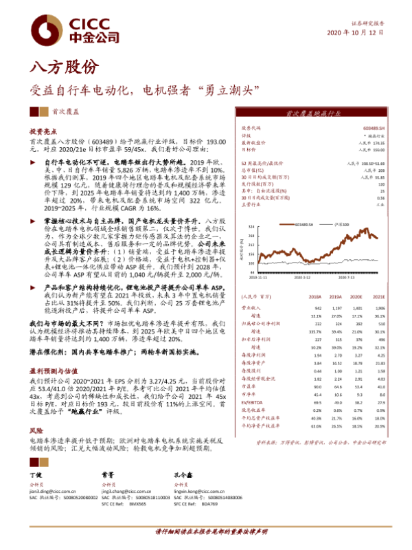 【中金公司】【20201012】受益自行车电动化,电机强者“勇立潮头”-26页 行业研究