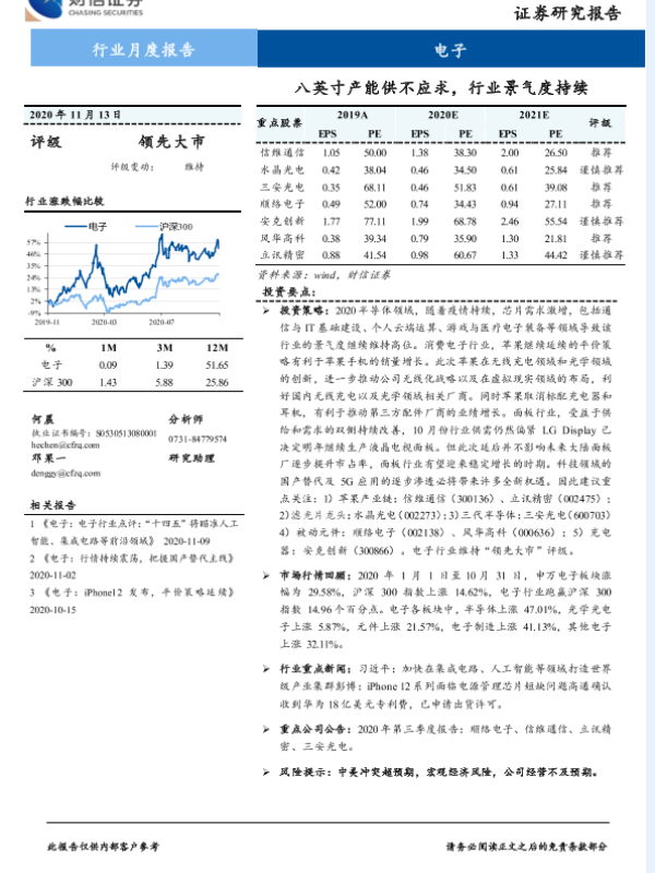 【财信证券】【20201113】20201113-财信证券-电子行业月度报告:八英寸产能供不应求,行业景气度持续-11页 行业研究