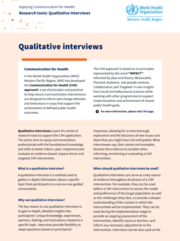 【World Health Organization】【2026】Applying Communication for Health Research tools Qualitative interviews-14页 指南