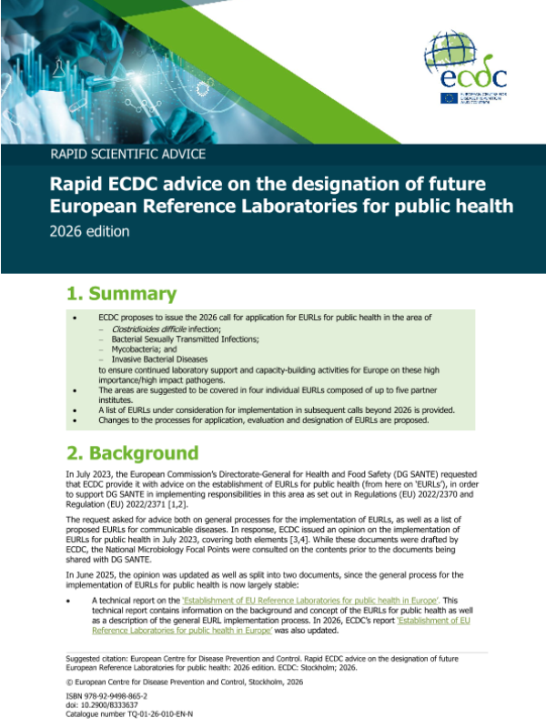 【European Centre for Disease Prevention and Control】【2026】RAPID SCIENTIFIC ADVICE Designation of future European Reference Laboratories for public health – 2025-6页 政策文件