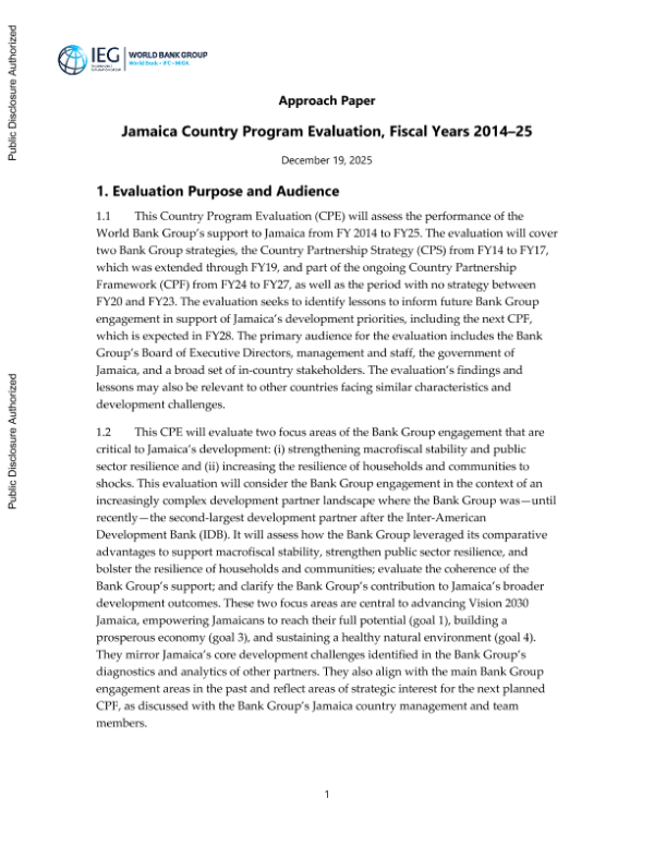 【World Bank Group】【202512】Jamaica Country Program Evaluation, Fiscal Years 2014–25-43页 政策文件