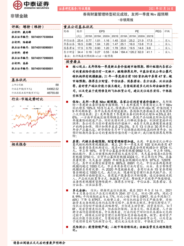 【中泰证券】【20210516】非银周报:券商财富管理转型初见成效,友邦一季度Nbv超预期-11页 行业研究