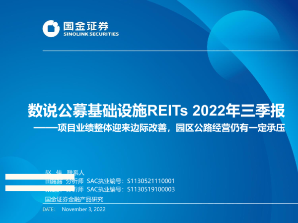 【国金证券】【20221103】数说公募基础设施REITs2022年三季报:项目业绩整体迎来边际改善,园区公路经营仍有一定承压-17页 行业研究