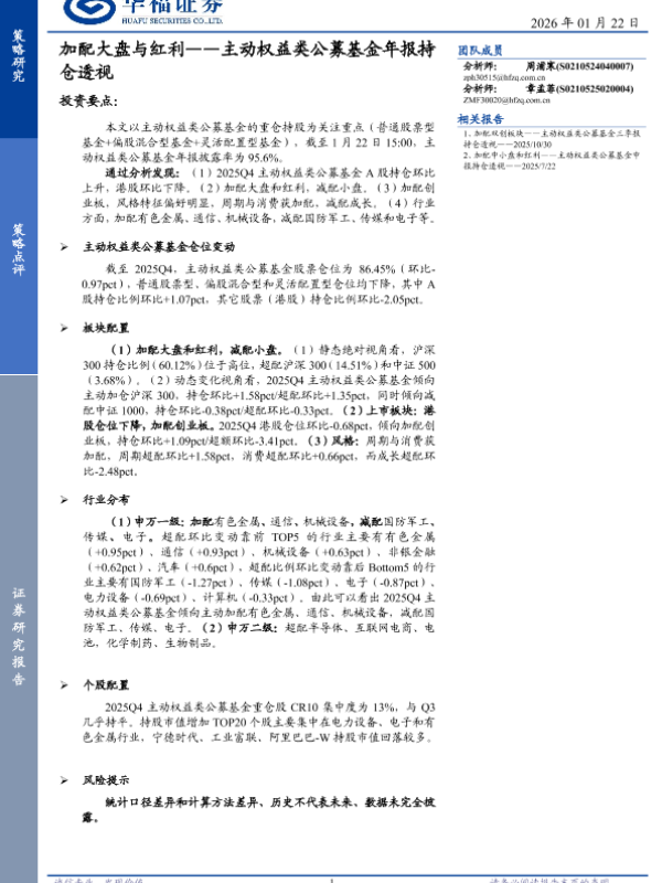 【华福证券】【2025】加配大盘与红利——主动权益类公募基金年报持仓透视-10页 证券期货研究报告