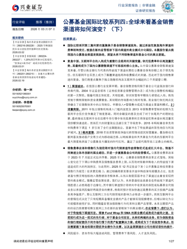 【兴业证券】【202603】2026年03月19日更新-公募基金国际比较系列四:全球来看基金销售渠道将如何演变?(下)-27页 证券期货研究报告