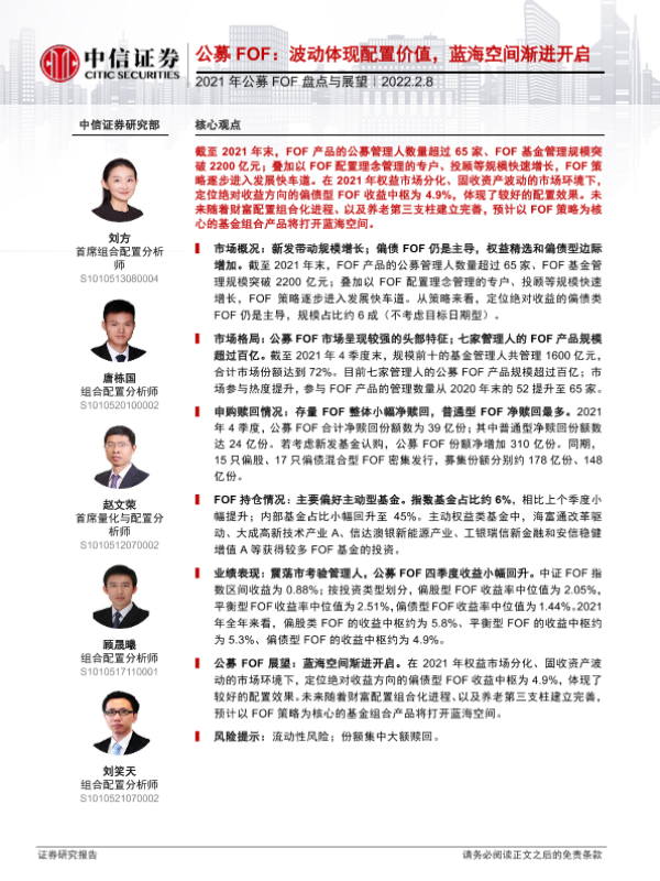 【中信证券】【20220208】2021年公募FOF盘点与展望:公募FOF,波动体现配置价值,蓝海空间渐进开启-36页 行业研究