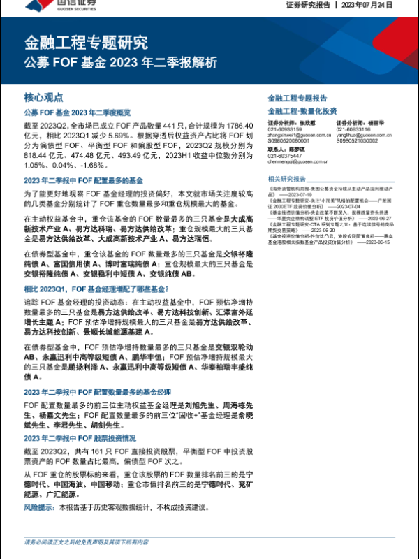 【国信证券】【20230724】公募FOF基金2023年二季报解析-20页 行业研究