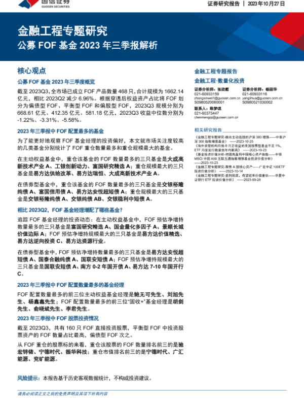 【国信证券】【20231027】金融工程专题研究:公募FOF基金2023年三季报解析-20页 行业研究