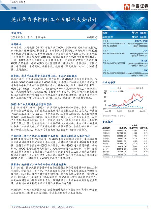 【华泰证券】【20230618】科技专题研究:关注华为手机链;工业互联网大会召开-21页 行业研究
