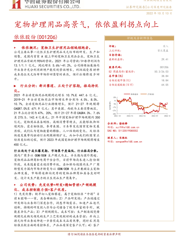 【华西证券】【20221013】宠物护理用品高景气,依依盈利拐点向上-27页 行业研究
