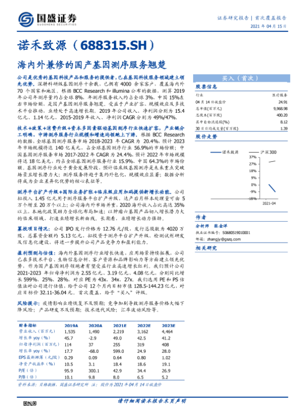 【国盛证券】【20210415】诺禾致源:海内外兼修的国产基因测序服务翘楚-28页 行业研究