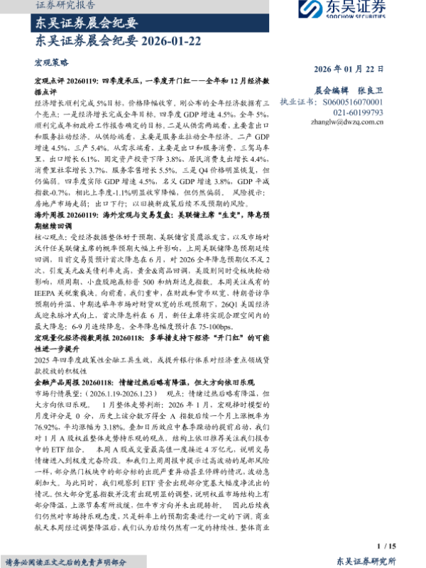 【东吴证券】【202601】东吴证券晨会纪要 2026-01-22-15页 会议纪要