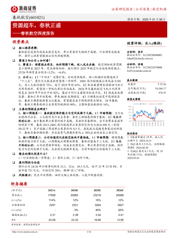 【浙商证券】【20250106】春秋航空深度报告:资源超车,春秋正盛-16页 行业研究