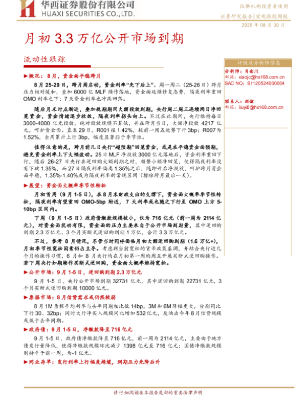 【华西证券】【202508】流动性跟踪:月初3.3万亿公开市场到期-16页 证券期货研究报告
