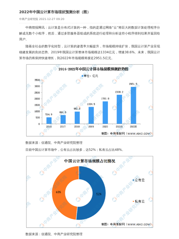 【中商产业研究院】【2022】2022年中国云计算市场现状预测分析-2页 行业研究