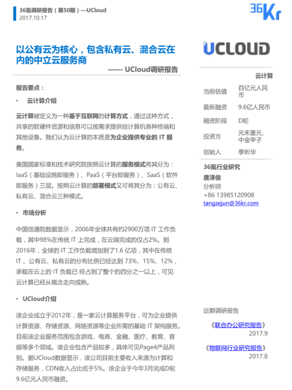 【36氪研究院】【20171017】以公有云为核心,包含私有云、混合云在内的中立云服务-10页 公司研究