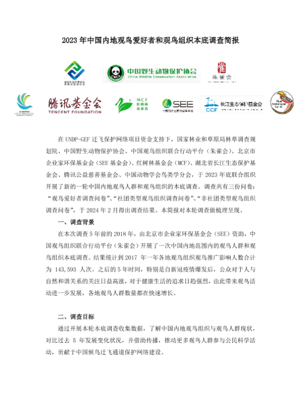 【SEE基金会】【20240531】2023年中国内地观鸟爱好者和观鸟组织本底调查报告-10页 市场调研