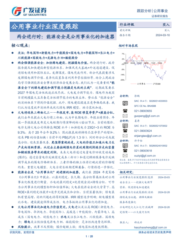 【广发证券】【20240310】公用事业行业深度跟踪:两会进行时,能源安全是公用事业化的加速器-25页 行业研究