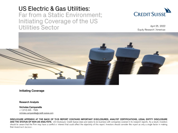 【Credit Suisse】【20220425】US Electric & Gas Utilities Far from a Static Environment; Initiating Coverage of the US Utilities Sector-334页 行业研究