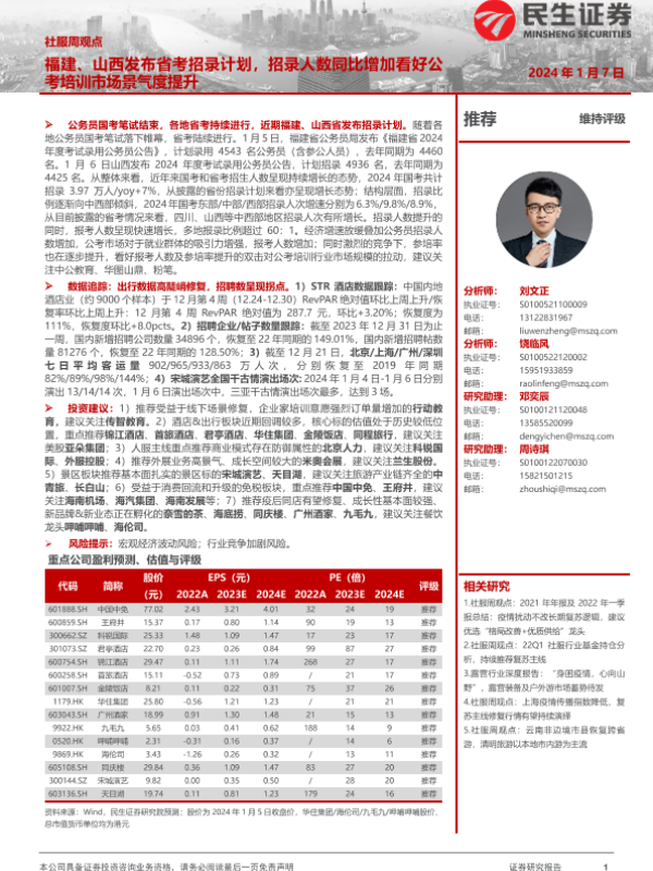 【民生证券】【20240107】社服周观点:福建、山西发布省考招录计划,招录人数同比增加看好公考培训市场景气度提升-21页 行业研究