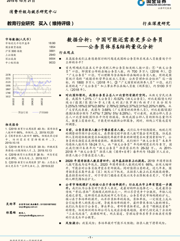 【国金证券】【20191021】教育行业深度研究:公务员体系&结构量化分析-数据分析:中国可能还需要更多公务员-19页 行业研究