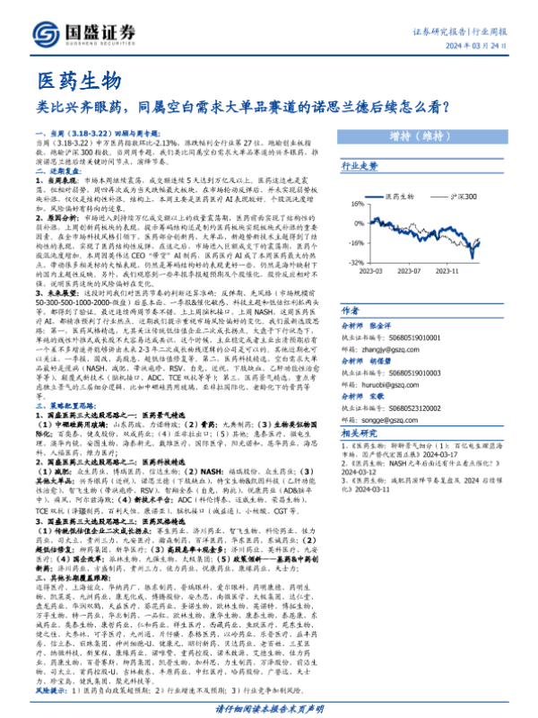 【国盛证券】【20240324】医药生物行业周报:类比兴齐眼药,同属空白需求大单品赛道的诺思兰德后续怎么看?-36页 行业研究