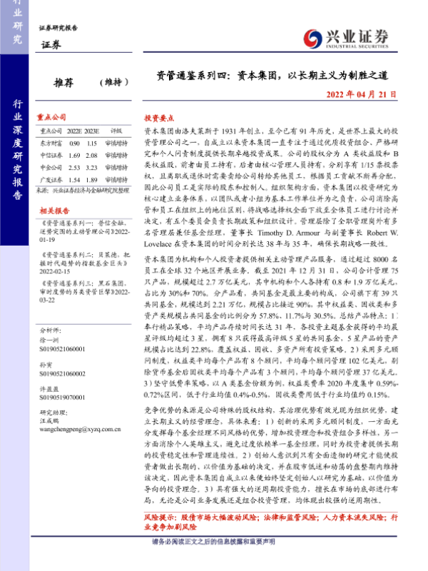 【兴业证券】【20220421】资管通鉴系列四:资本集团,以长期主义为制胜之道-24页 行业研究