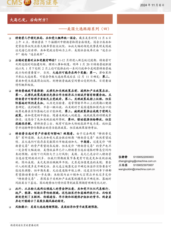 【海通证券】【20241106】美国大选跟踪系列(四):大局已定,后向何方?-12页 宏观策略