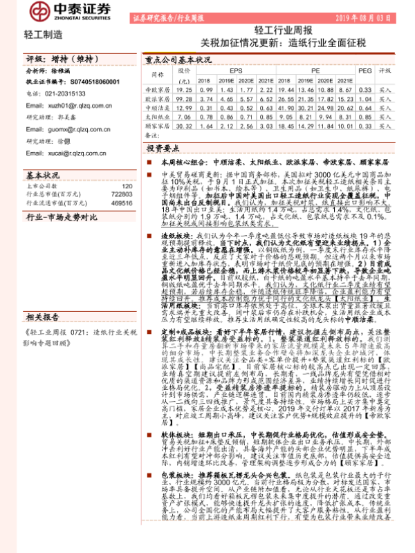 【中泰证券】【20190803】20190803-中泰证券-轻工行业周报:关税加征情况更新:造纸行业全面征税-16页 行业研究