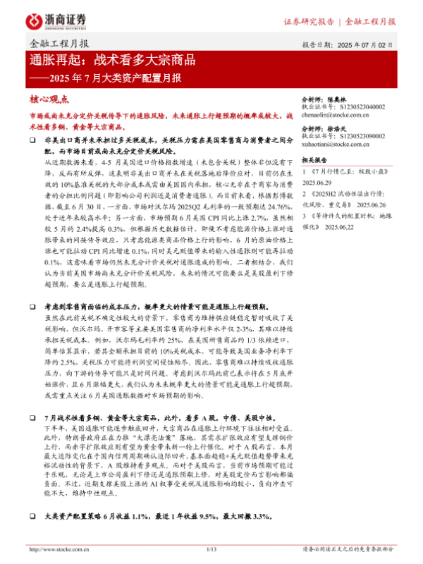 【浙商证券】【20250702】2025年7月大类资产配置月报:通胀再起,战术看多大宗商品-13页 证券期货研究报告
