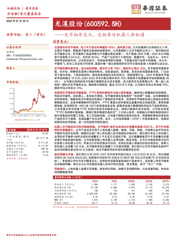 【华源证券】【20250720】龙溪股份(600592)关节轴承龙头,龙轴再迎机器人新机遇-44页 证券期货研究报告