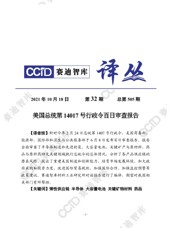 【赛迪智库材料工业研究所】【20211018】美国总统第14017号行政令百日审查报告-28页 政策文件