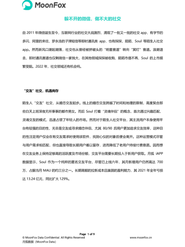 【月狐数据(MoonFox Data)】【20220731】躲不开的微信,做不大的社交-9页 行业研究