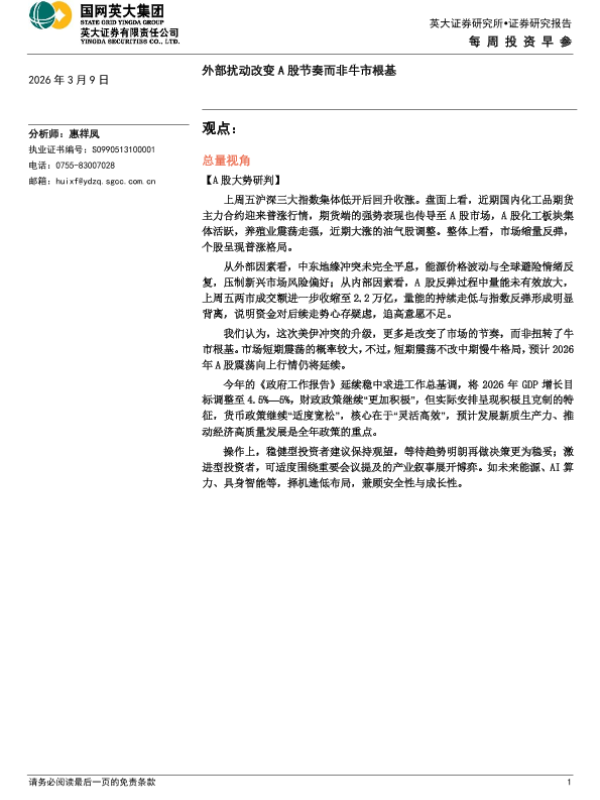 【英大证券】【202603】外部扰动改变A股节奏而非牛市根基-5页 证券期货研究报告