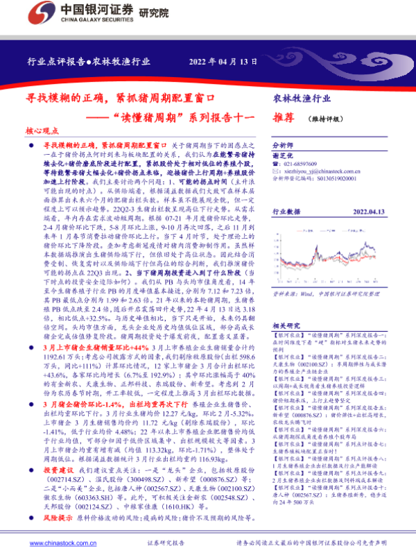 【银河证券】【20220413】20220413-中国银河-“读懂猪周期”系列报告十一:寻找模糊的正确,紧抓猪周期配置窗口-10页 行业研究