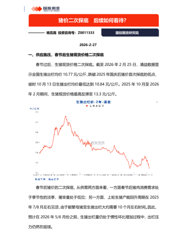 【国投期货】【202602】猪价二次探底 后续如何看待?-13页 证券期货研究报告