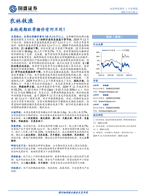 【国盛证券】【20250105】20250105-国盛证券-农林牧渔行业周报:本轮周期旺季猪价有何不同?-13页 行业研究