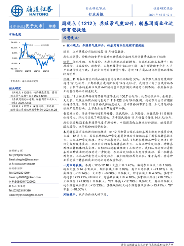 【海通证券】【20211212】20211212-海通证券-农业周观点:养殖景气度回升,转基因商业化进程有望提速-4页 行业研究