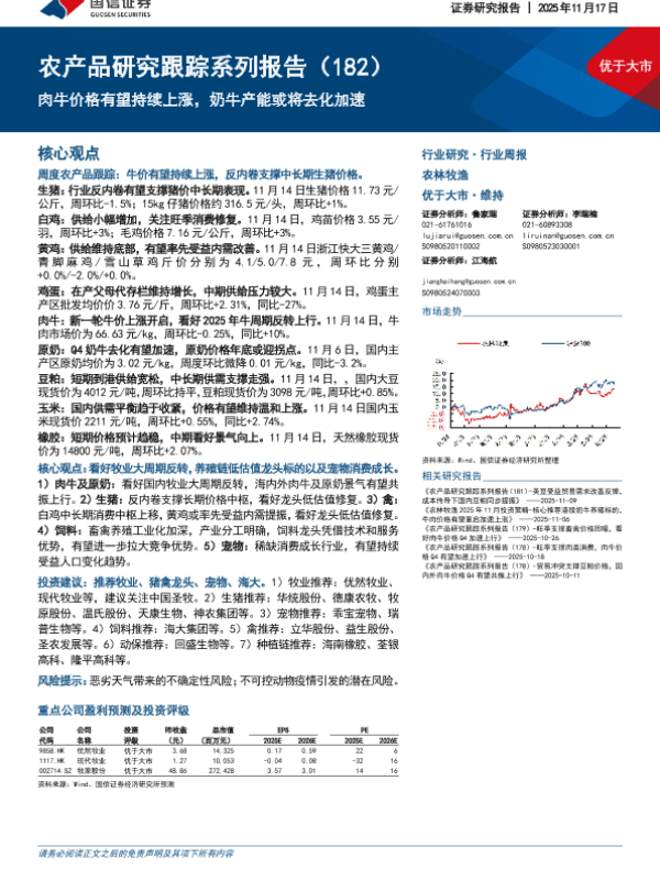【国信证券】【202511】农产品研究跟踪系列报告(182)-肉牛价格有望持续上涨,奶牛产能或将去化加速-27页 证券期货研究报告