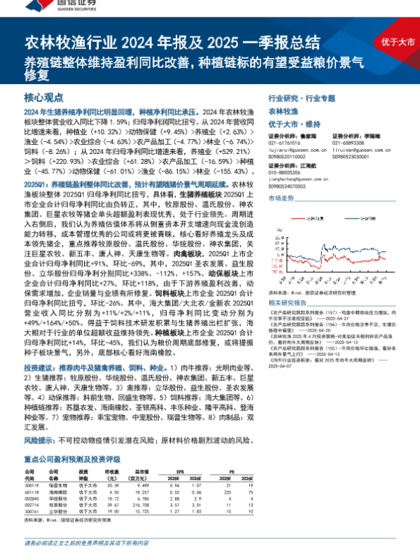 【国信证券】【202505】农林牧渔行业2024年报及2025一季报总结-15页 行业研究