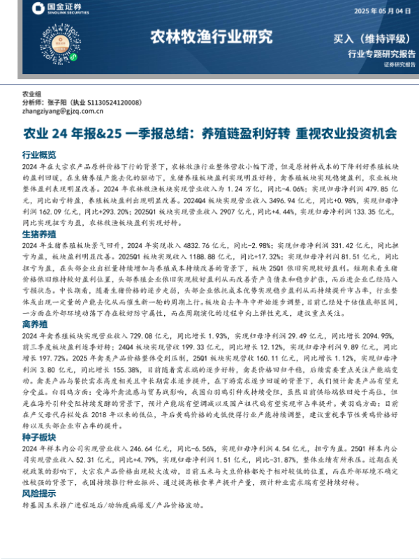【国金证券】【20250504】农林牧渔行业农业24年报&25一季报总结-18页 行业研究
