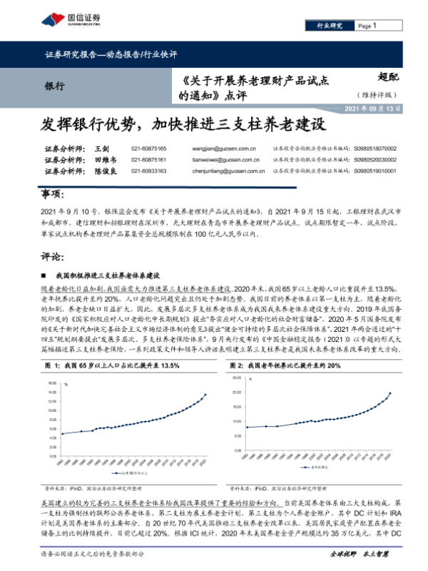 【国信证券】【20210913】关于开展养老理财产品试点的通知点评:发挥银行优势,加快推进三支柱养老建设-7页 行业研究