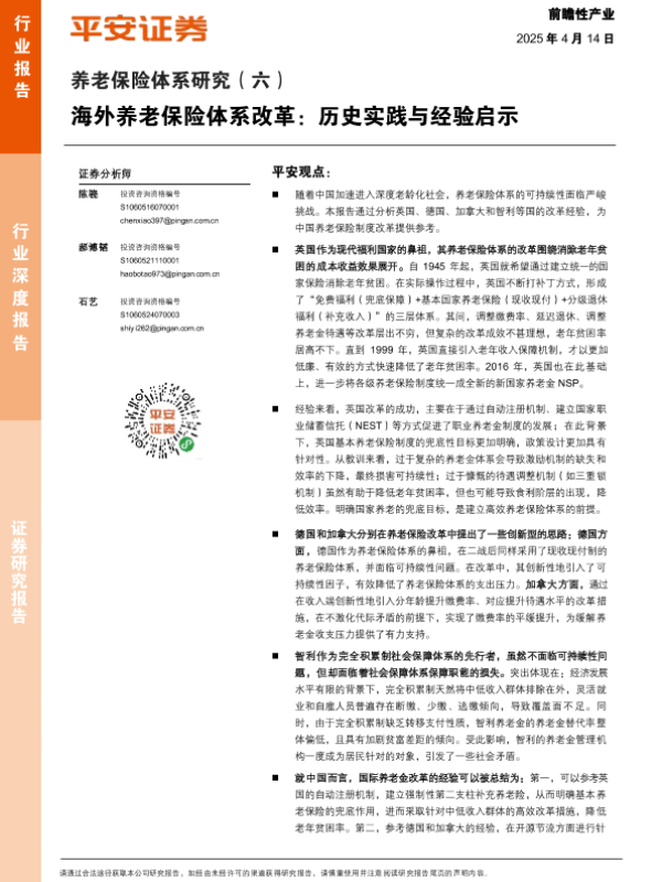 【平安证券】【20250414】养老保险行业体系研究(六):海外养老保险体系改革,历史实践与经验启示-33页 证券期货研究报告