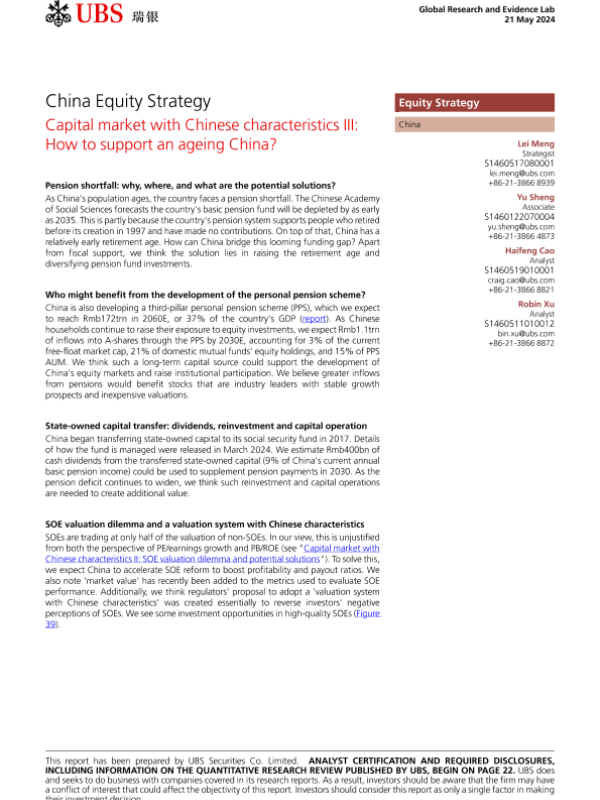 【UBS Securities Co. Limited】【20240521】UBS Equities-China Equity Strategy Capital market with Chinese characteristics III How to support an ageing China?-27页 行业研究