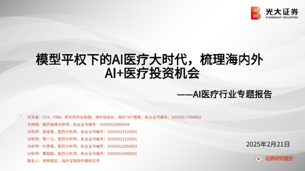 【光大证券】【20250221】2025-02-22-AI医疗行业专题报告:模型平权下的AI医疗大时代,梳理海内外AI+医疗投资机会-20页 行业研究