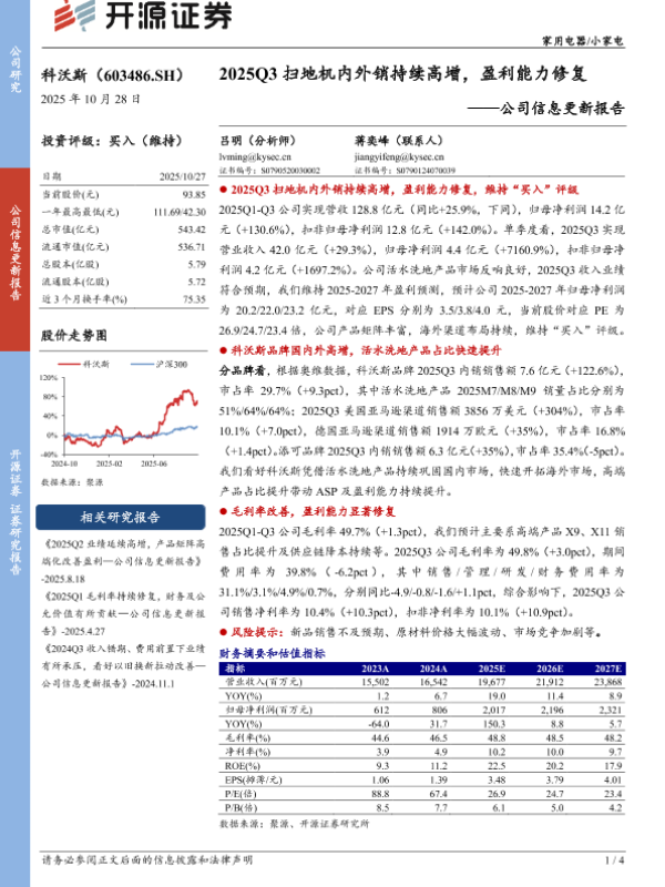 【开源证券】【202510】2025Q3扫地机内外销持续高增,盈利能力修复——公司信息更新报告-4页 证券期货研究报告